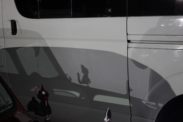お隣の車にジジが影絵♪