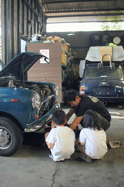 吉村先生にオイル交換を習う生徒が2人♪